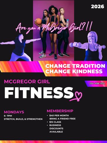 Are you ready to embrace fitness in a way that truly fits your life? Let’s Dance McGregor is excited to announce the opening of McGregor Girl Fitness in October! We're redefining women’s health by offering community fitness that emphasizes simple, effective workouts, flexible workout classes, and a strong sense of belonging. Whether you’re starting fresh or getting back into the groove, our flexible workout class supports your journey! Taking care of yourself isn’t selfish; it’s powerful. This message resonates far beyond your own health. Imagine this: your children watching you embrace self-care, learning by your example that health is a priority. They think, 'If my mom works out, I will too.' That’s how we change tradition—by starting with ourselves.